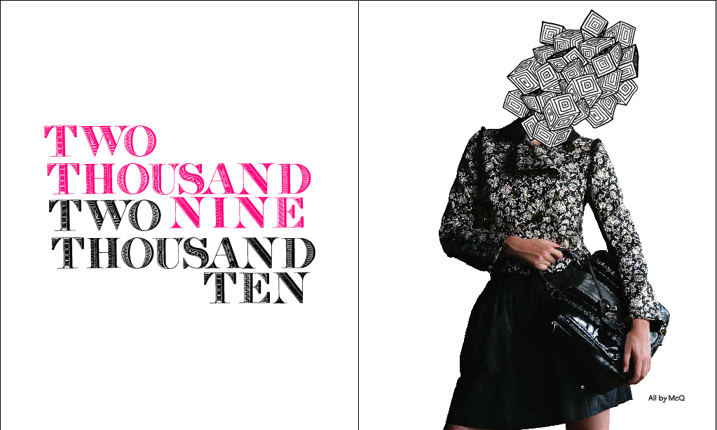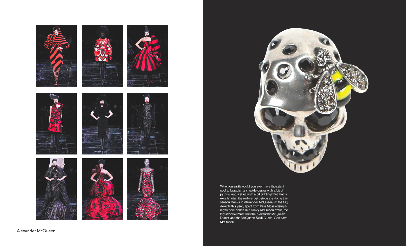 2009-2010 magazine design and layout for Front Row multi brand store that carried Alexander McQueen, See by Chloé, Luella, Jenny Packham, Sergio Rossi among other designers.