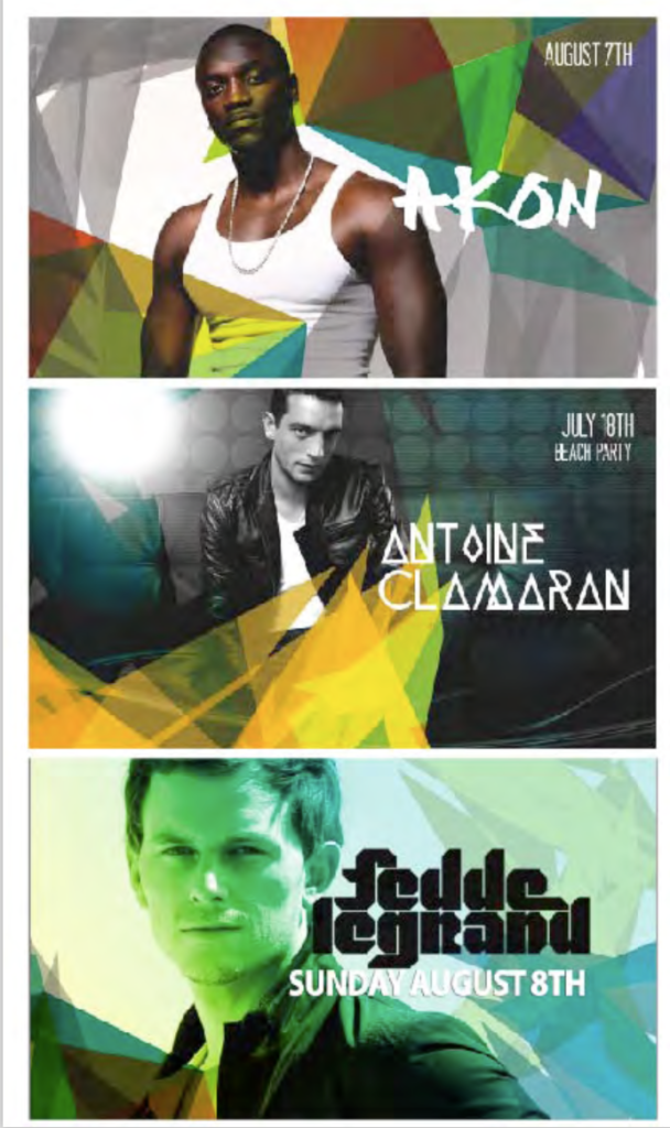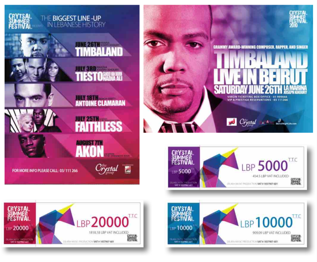2010 Music Festival (including Timbaland, Faithless, Akon, Tiesto..) complete visuals including posters, flyers, tickets, cards, and promotional items.