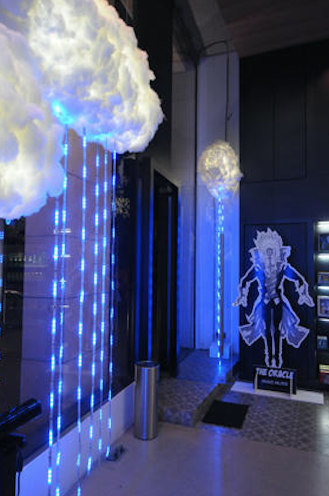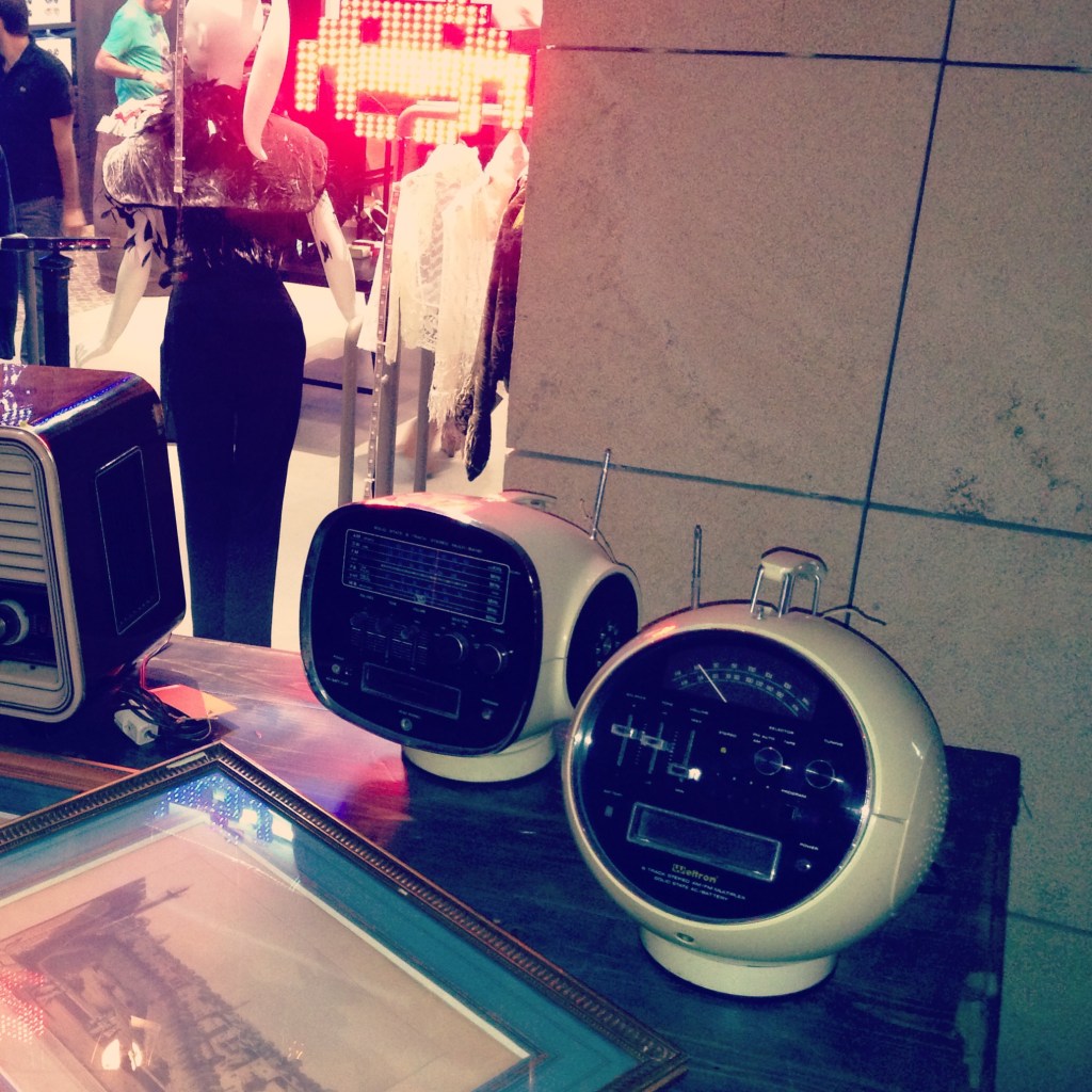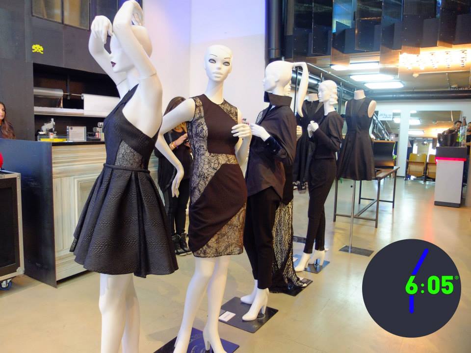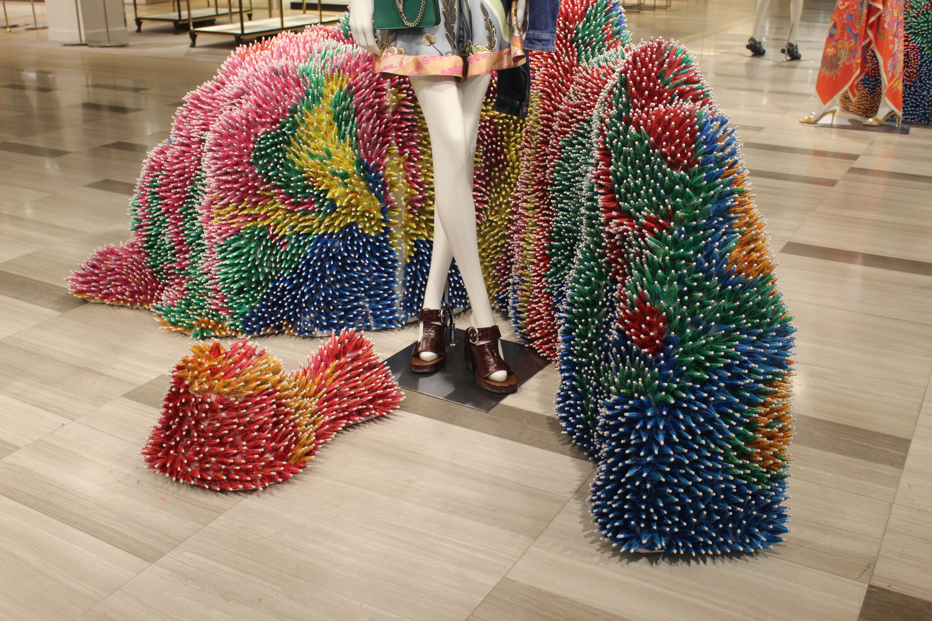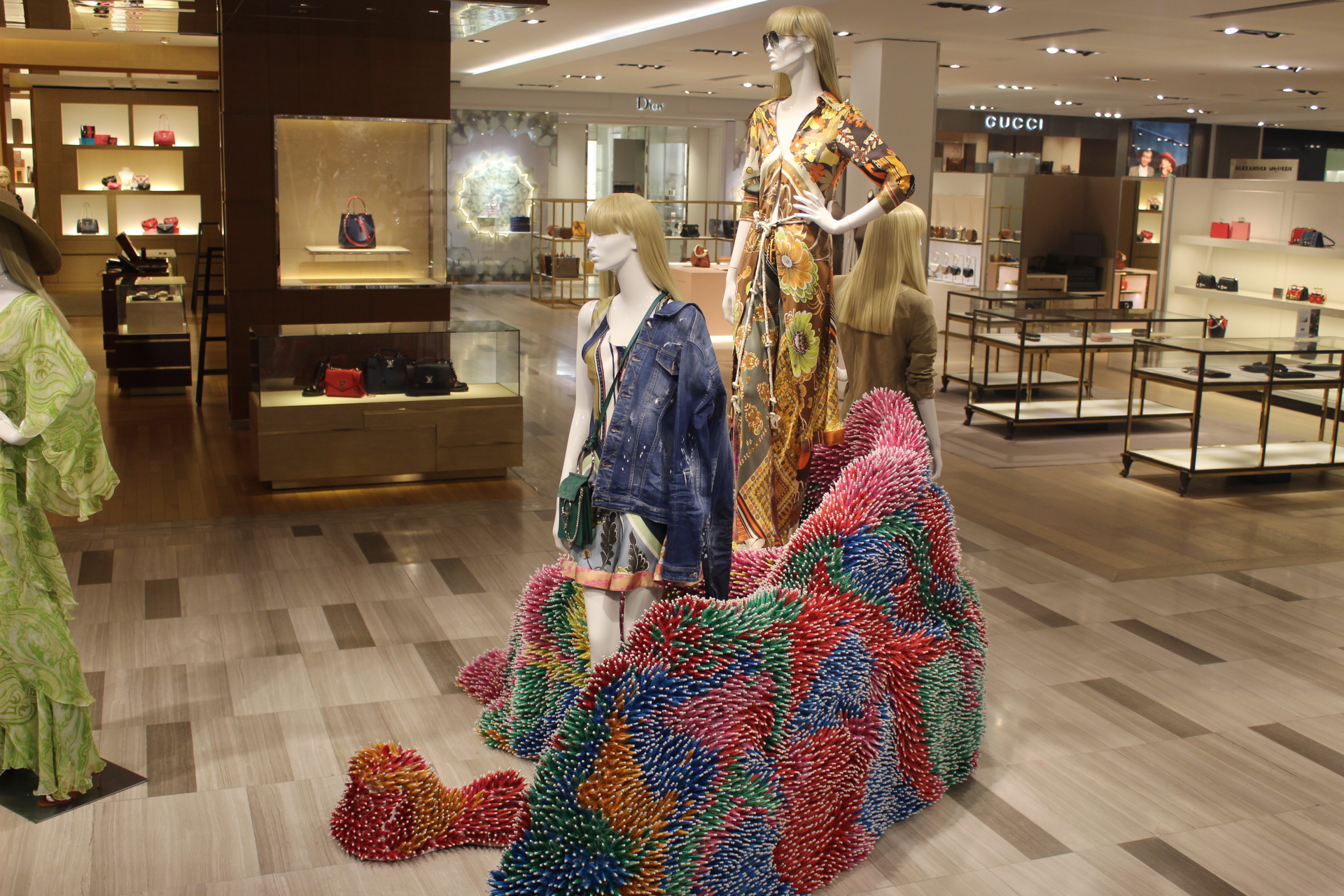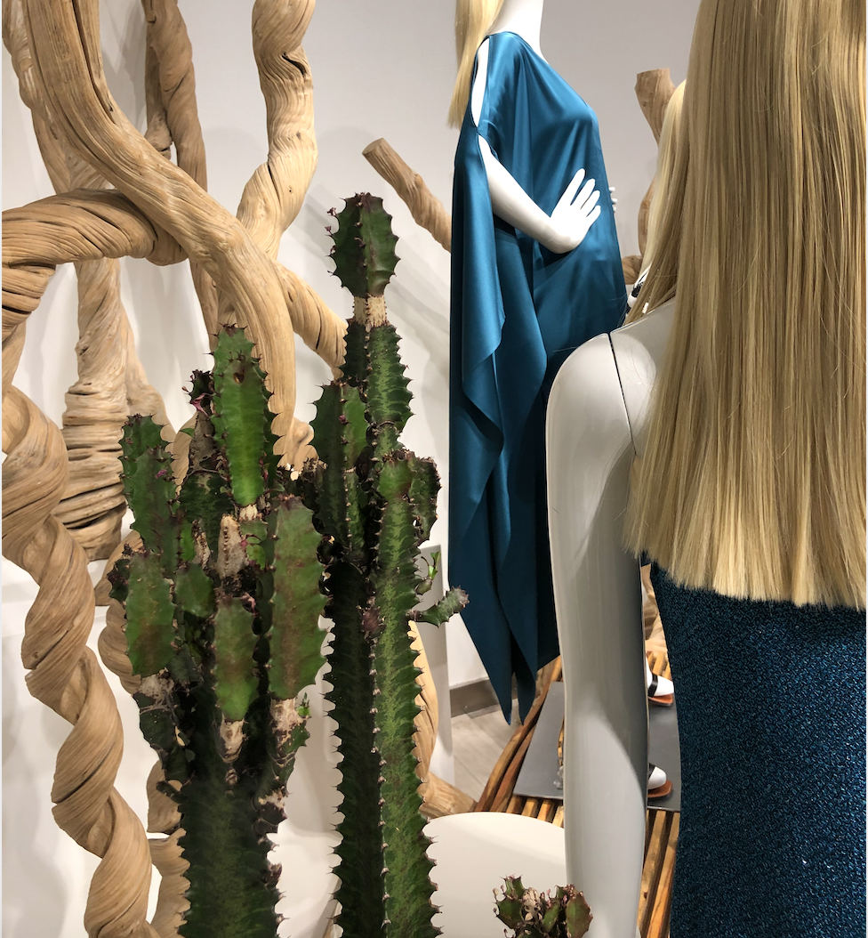 Playing with lights and reflective prisms with these iridescent blocks on the wall. Mannequins styled by me with Le Superbe, Marchesa, Jay Godefrey, Retrofete.